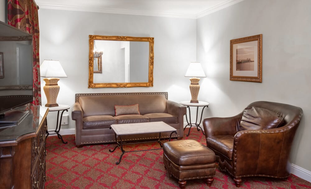 Give inspiration a bit more room to spread out and upgrade to a larger space with a dining area and spacious sitting area, complete with a sofa bed. Let your mind wander with an expansive view of the Historic District and complimentary champagne with resort fee.