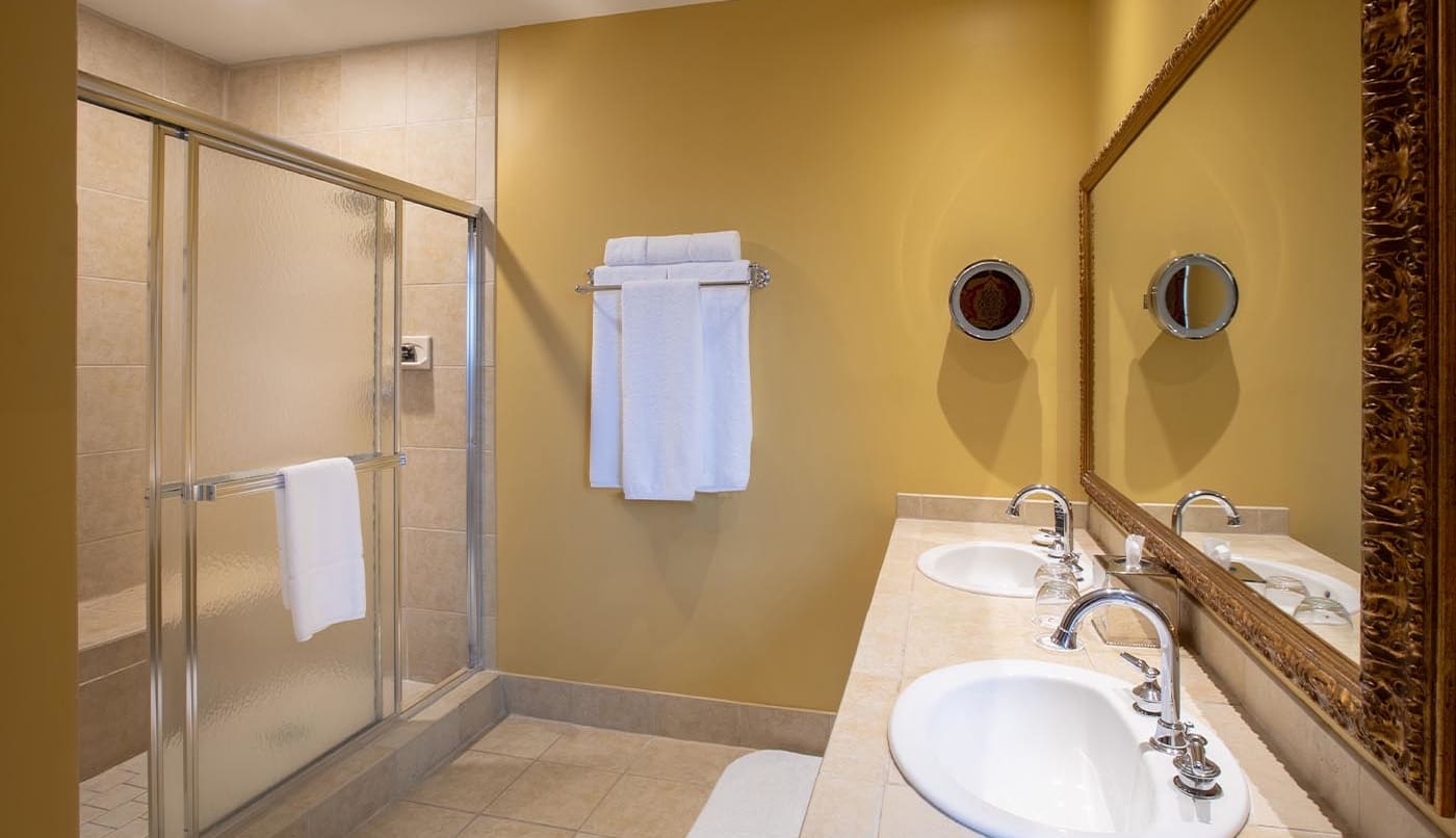 Explore the ultimate in relaxation with a dip in your in-room Jacuzzi tub and the panoramic view of the Historic District. The tower suite features a staircase that will lead you to a striking, four-poster iron bed where you can unwind with old-world charm and complimentary champagne with resort fee.
